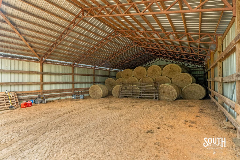 Cattle and livestock are well supported with dependable water sources, including a one-acre pond and float-controlled cement troughs supplied by community water. Handling cattle is efficient with a well-functioning alleyway and corral system. Along Sellers Cooley Road, round wooden post fencing lends the property a timeless, traditional look. This stretch also leads to a picturesque house site that’s been prepped with fill dirt and is ready for your dream home.