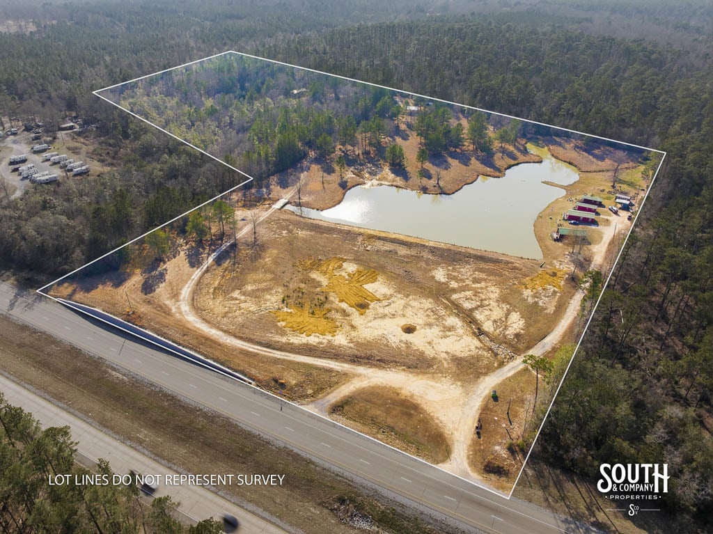 The property features rolling topography and is predominantly open, with scattered pine and hardwood throughout. The ground is largely cleared and ready for immediate use. Approximately 4± acres along the highway have already been opened and positioned for future development, providing a practical starting point for commercial construction, equipment yard space, storage expansion, or operational facilities.